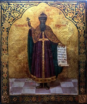 Antique 18c Russian Orthodox Hand Painted Wood Icon “St. Prince Vladimir”on gold