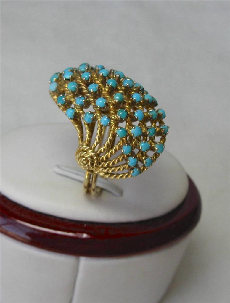 This is a magnificent estate jewel! Absolutely the finest quality. The stunning effect of the gorgeous Persian turquoise and the beautiful 14K gold setting is so divine!